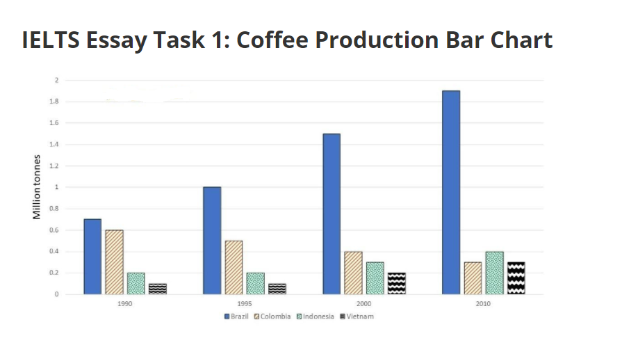 The chart shows the coffee production in four countries from 1990 to 2010.